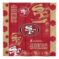 - Features San Francisco 49ers, logo and location designed in geometric shapes on a team color background